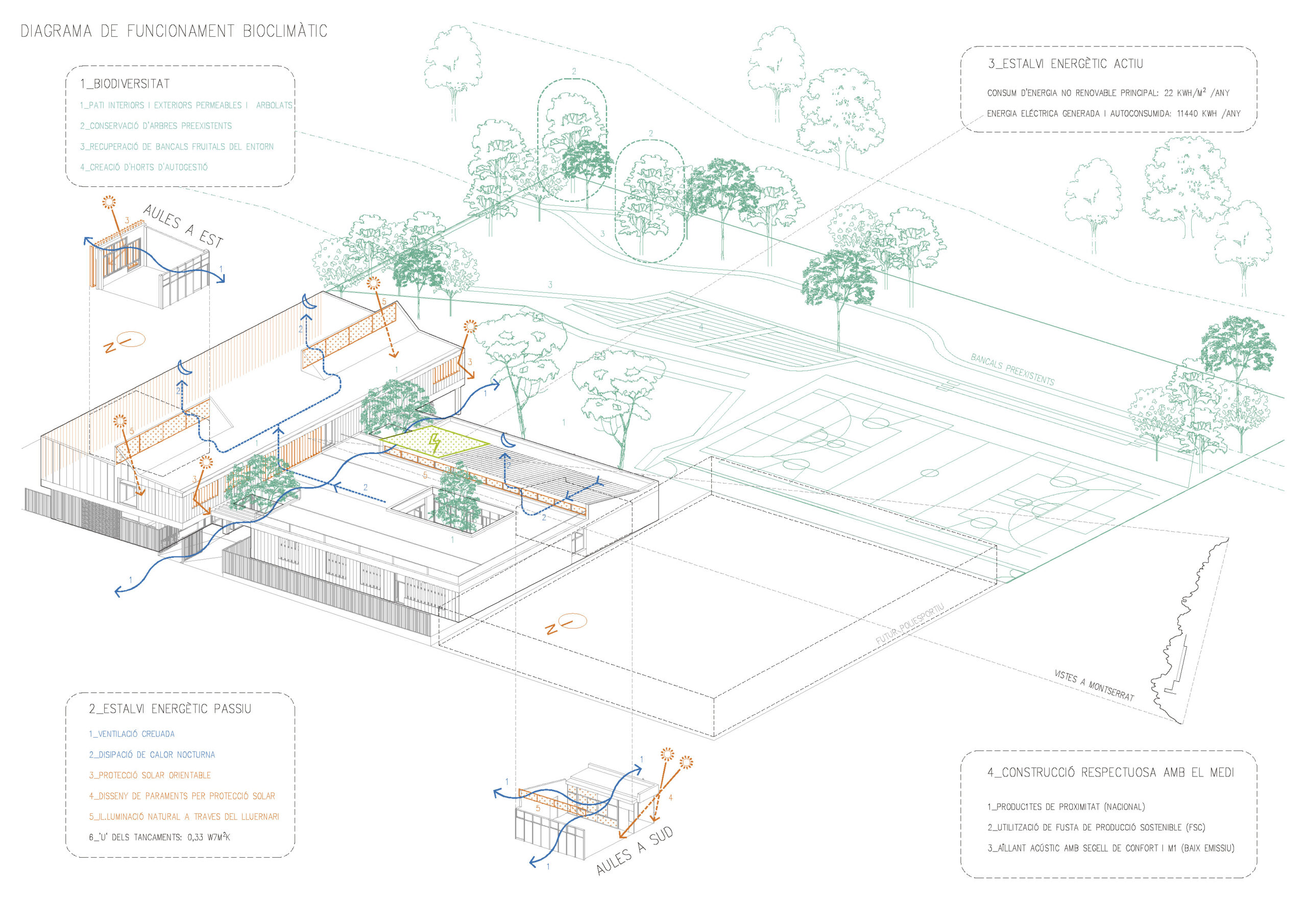Consultants: Manel Fernandez, BFA (structure), Maria Lluisa Sanchez, JSS Ing and Arq. SLP, (installations), Aleksandar Ivancic, Aiguasol (energy and sustainability), Enric Peña AT3 (budget)