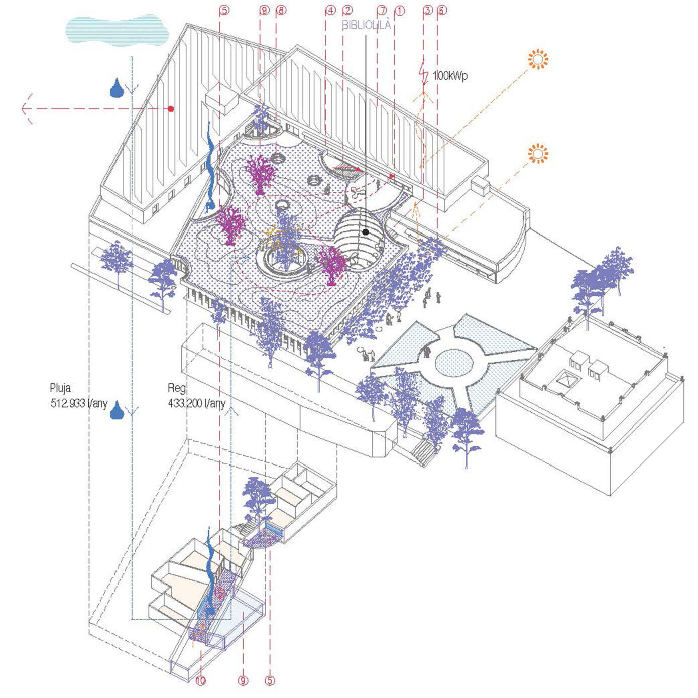Consultants: Manel Fernandez, BFA (structure), Maria Lluisa Sanchez, JSS Ing and Arq. SLP, (installations), Aleksandar Ivancic, Aiguasol (energy and sustainability), Enric Peña AT3 (budget), David Casadevall (acoustic), Anna Zahonero (AZ paisaje)